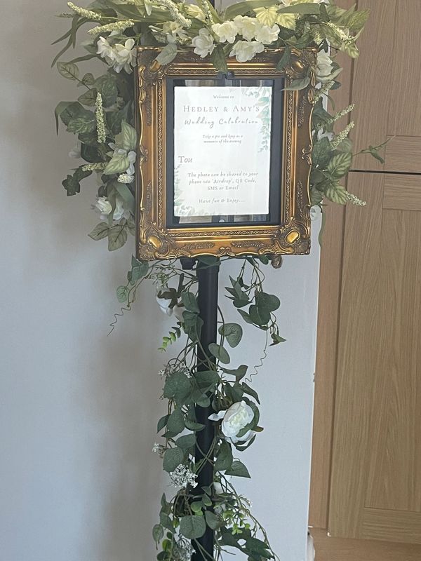 Our Beautiful picture frame Photo Booth will send photos directly to your guests via 'Airdrop', SMS or Email, and you get an album with every picture taken, includes Gifs, Boomerangs and videos.